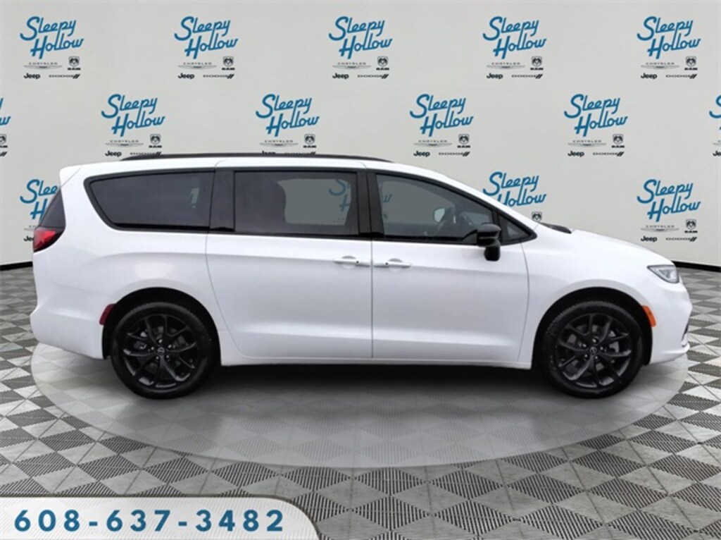 Bright White Clearcoat 2026 Chrysler Pacifica Select AWD 9-Speed 948TE Automatic 3.6L V6 24V VVT 10.1" Touchscreen Display, 18" x 7.5" Painted Aluminum Wheels, 3.73 Axle Ratio, 3rd row seats: split-bench, 4-Wheel Disc Brakes, 4G LTE Wi-Fi Hot Spot, 6 Speakers, ABS brakes, Air Conditioning, Alloy wheels, AM/FM radio: SiriusXM, Anodized Ink Badging, Apple CarPlay, Apple CarPlay/Android Auto, Auto-dimming Rear-View mirror, Automatic temperature control, AWD Suspension, Black Day Light Opening Moldings, Black Seats, Black Stow 'N Place Roof Rack, Brake assist, Bumpers: body-color, Caprice Leatherette Bucket Seats, Caprice Leatherette with S Logo, Compass, Connectivity - US/Canada, Delay-off headlights, Disassociated Touchscreen Display, Driver door bin, Driver vanity mirror, Driver's Seat Mounted Armrest, Dual front impact airbags, Dual front side impact airbags, Electronic Stability Control, Emergency communication system: Chrysler Connect, For Details, Visit DriveUconnect.com, Four wheel independent suspension, Front anti-roll bar, Front Bucket Seats, Front dual zone A/C, Front fog lights, Front reading lights, Fully automatic headlights, Garage door transmitter, Google Android Auto, GPS Antenna Input, Heated door mirrors, Heated front seats, Heated steering wheel, Illuminated entry, Integrated Active Noise Cancellation, Integrated Center Stack Radio, Knee airbag, Low tire pressure warning, Memory seat, Occupant sensing airbag, Outside temperature display, Overhead airbag, Overhead console, Panic alarm, ParkView Rear Back-Up Camera, Passenger door bin, Passenger seat mounted armrest, Passenger vanity mirror, Piano Black Interior Accents, Power door mirrors, Power driver seat, Power Liftgate, Power steering, Power windows, Premium Fascia Upper/Lower Grille with Black Surround, Premium Rear Fascia Black, Quick Order Package 27L, Radio data system, Radio: Uconnect 5 with 10.1" Display, Rain sensing wipers, Rear air conditioning, Rear reading lights, Rear window defroster, Rear window wiper, Reclining 3rd row seat, Remote keyless entry, S Appearance Package, S Badge, Security system, Speed control, Split folding rear seat, Spoiler, Steering wheel mounted audio controls, Tachometer, Telescoping steering wheel, Tilt steering wheel, Traction control, Trip computer, Turn signal indicator mirrors, USB Host Flip, Variably intermittent wipers, Voltmeter, Wheels: 20" x 7.5" S-Model Aluminum Design 1.