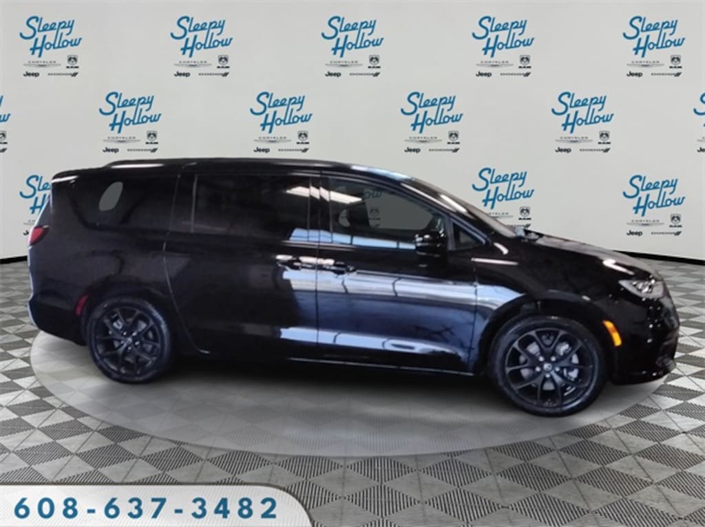 Diamond Black Crystal Pearlcoat 2026 Chrysler Pacifica Select AWD 9-Speed 948TE Automatic 3.6L V6 24V VVT 10.1" Touchscreen Display, 18" x 7.5" Painted Aluminum Wheels, 3.73 Axle Ratio, 3rd row seats: split-bench, 4-Wheel Disc Brakes, 4G LTE Wi-Fi Hot Spot, 6 Speakers, ABS brakes, Air Conditioning, Alloy wheels, AM/FM radio: SiriusXM, Anodized Ink Badging, Apple CarPlay, Apple CarPlay/Android Auto, Auto-dimming Rear-View mirror, Automatic temperature control, AWD Suspension, Black Day Light Opening Moldings, Black Seats, Black Stow 'N Place Roof Rack, Brake assist, Bumpers: body-color, Caprice Leatherette Bucket Seats, Caprice Leatherette with S Logo, Compass, Connectivity - US/Canada, Delay-off headlights, Disassociated Touchscreen Display, Driver door bin, Driver vanity mirror, Driver's Seat Mounted Armrest, Dual front impact airbags, Dual front side impact airbags, Electronic Stability Control, Emergency communication system: Chrysler Connect, For Details, Visit DriveUconnect.com, Four wheel independent suspension, Front anti-roll bar, Front Bucket Seats, Front dual zone A/C, Front fog lights, Front reading lights, Fully automatic headlights, Garage door transmitter, Google Android Auto, GPS Antenna Input, Heated door mirrors, Heated front seats, Heated steering wheel, Illuminated entry, Integrated Active Noise Cancellation, Integrated Center Stack Radio, Knee airbag, Low tire pressure warning, Memory seat, Occupant sensing airbag, Outside temperature display, Overhead airbag, Overhead console, Panic alarm, ParkView Rear Back-Up Camera, Passenger door bin, Passenger seat mounted armrest, Passenger vanity mirror, Piano Black Interior Accents, Power door mirrors, Power driver seat, Power Liftgate, Power steering, Power windows, Premium Fascia Upper/Lower Grille with Black Surround, Premium Rear Fascia Black, Quick Order Package 27L, Radio data system, Radio: Uconnect 5 with 10.1" Display, Rain sensing wipers, Rear air conditioning, Rear reading lights, Rear window defroster, Rear window wiper, Reclining 3rd row seat, Remote keyless entry, S Appearance Package, S Badge, Security system, Speed control, Split folding rear seat, Spoiler, Steering wheel mounted audio controls, Tachometer, Telescoping steering wheel, Tilt steering wheel, Traction control, Trip computer, Turn signal indicator mirrors, USB Host Flip, Variably intermittent wipers, Voltmeter, Wheels: 20" x 7.5" S-Model Aluminum Design 1.