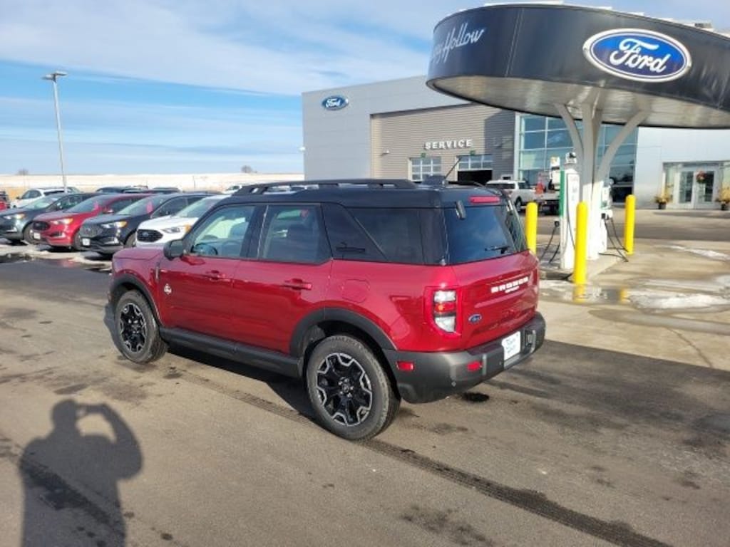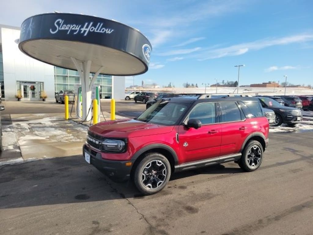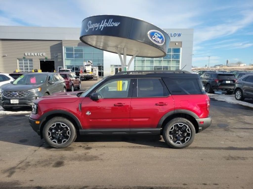 New Price! Ruby Red Metallic 2025 Ford Bronco Sport Outer Banks 4WD 8-Speed Automatic 1.5L EcoBoost B&O Sound System by Bang & Olufsen, Connected Navigation, Equipment Group 300A, Front fog lights, HD Radio, Heated front seats, Heated steering wheel, Outer Banks Tech Package+, Power Moonroof.