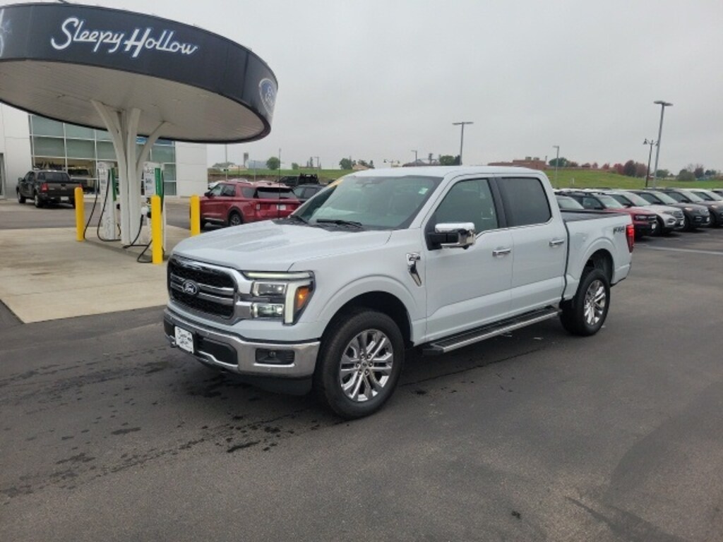 New Price! Space White Metallic 2025 Ford F-150 Lariat 4WD 10-Speed Automatic 5.0L V8 4WD, 4x4 FX4 Off-Road Bodyside Decal, 6" Angular Bright Anodized Step Bar, Adjustable pedals, Electronic Locking w/3.73 Axle Ratio, Equipment Group 501A Mid, Front fog lights, FX4 Off-Road Package, Heated front seats, Heated steering wheel, Hill Descent Control, Illuminated Driver & Passenger Visors, Integrated Trailer Brake Controller, Monotube Rear Shocks, Navigation system: Connected Navigation, Off-Road Tuned Front Shock Absorbers, Power-Sliding Rear Window, Rock Crawl Mode, Tow/Haul Package, Tray Style Floor Liner w/o Carpet Mats, Ventilated front seats, Wheels: 20" Chrome-Like PVD.