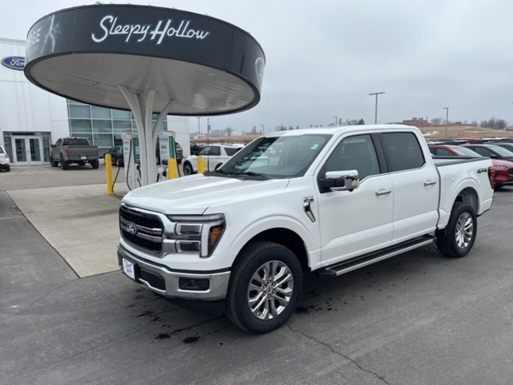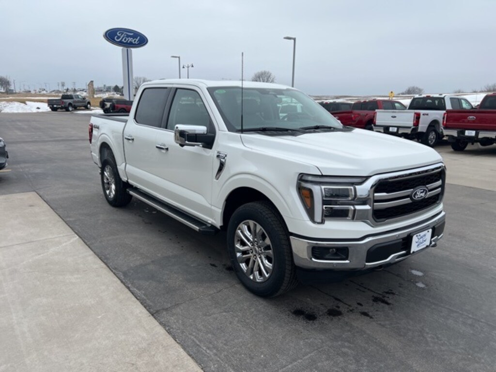 New Price! Star White Metallic Tri-Coat 2026 Ford F-150 Lariat 4WD 10-Speed Automatic 5.0L V8 4WD, 6" Angular Bright Anodized Step Bar, ActiveX Trimmed Bucket Seats, Electronic Locking with 3.73 Axle Ratio, Equipment Group 501A Mid, Ford Connectivity Package (1-Year Included), Heated front seats, Heated steering wheel, Illuminated Driver and Passenger Visors, Integrated Trailer Brake Controller, Internet access capable: 5G Modem - Ford Connectivity Package, Navigation system: Connected Navigation, Power-Adjustable Pedals with Memory, Power-Sliding Rear Window, Radio: B&O Sound System by Bang and Olufsen, SYNC 4 with Enhanced Voice Recognition, Tow/Haul Package, Twin Panel Moonroof, Ventilated front seats, Wheels: 20" Chrome-Like PVD.