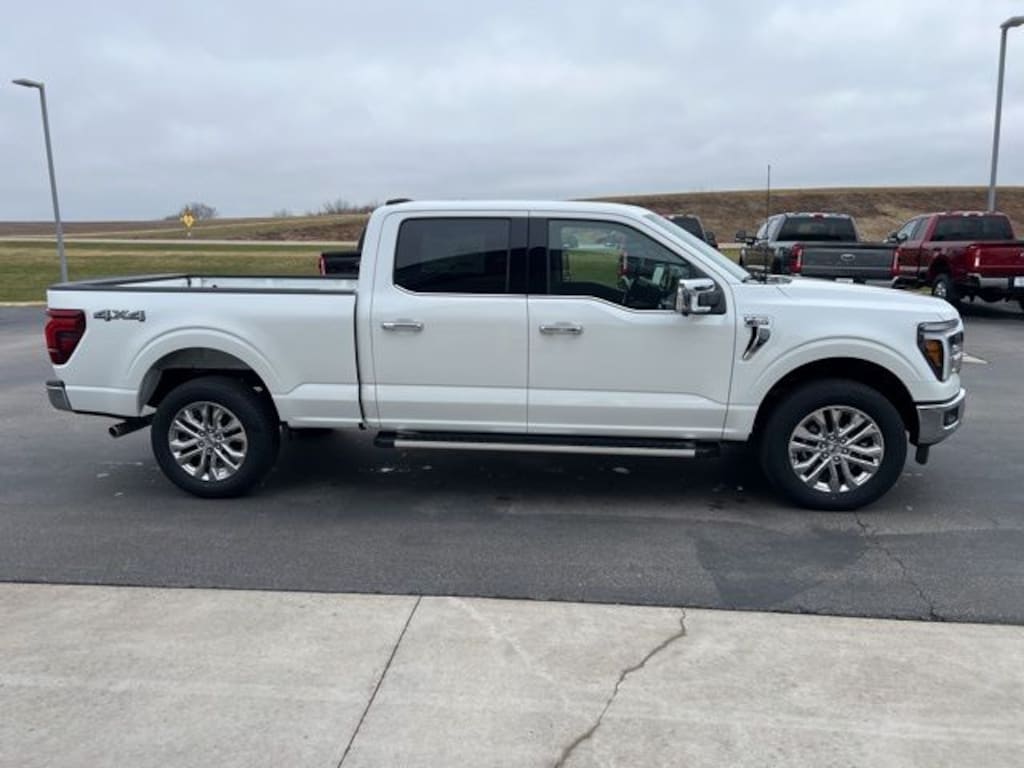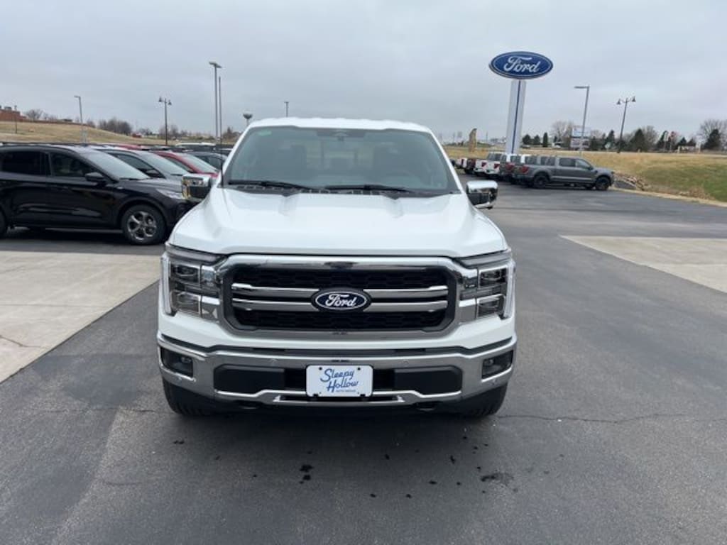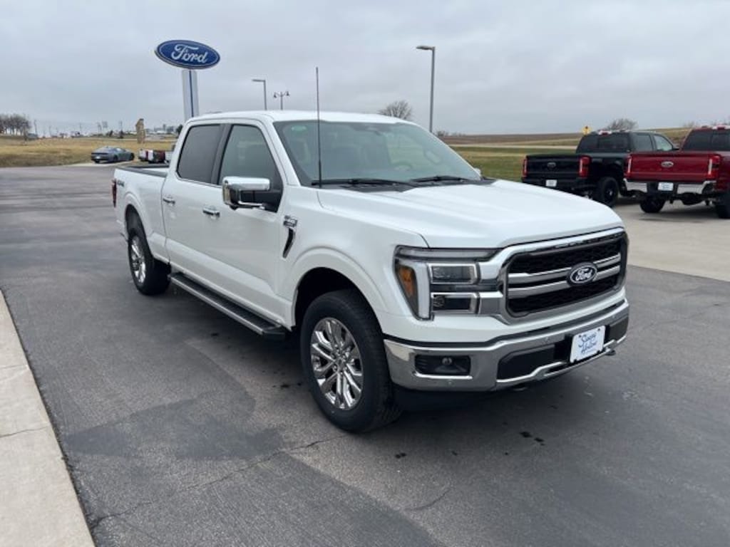 New Price! Star White Metallic TC 2026 Ford F-150 Lariat 4WD 10-Speed Automatic 3.5L V6 EcoBoost 4WD, 2nd Row Heated Seats, ActiveX Trimmed Bucket Seats, Ambient Lighting - Ice Blue Color Only, Console Worksurface, Electronic Locking with 3.55 Axle Ratio, Equipment Group 502A High, Ford Connectivity Package (1-Year Included), Front fog lights, Head-Up Display, Heated front seats, Heated steering wheel, Illuminated Driver and Passenger Visors, Integrated Trailer Brake Controller, Internet access capable: 5G Modem - Ford Connectivity Package, Mobile Office Package, Navigation system: Connected Navigation, Partitioned Lockable Rear Storage, Power-Adjustable Pedals with Memory, Power-Sliding Rear Window, Radio: B&O Unleashed Sound System by Bang & Olufsen, Tow/Haul Package, Ventilated front seats, Wheels: 20" Chrome-Like PVD, Wireless Charging.
