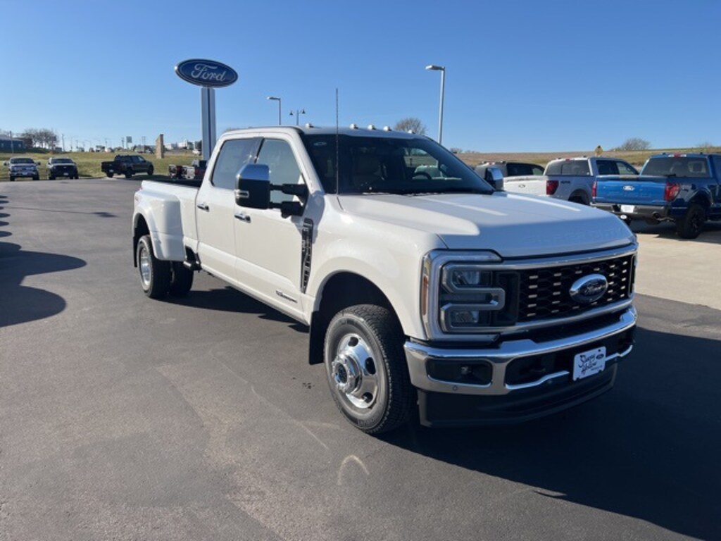 New Price! Star White Metallic Tri-Coat 2026 Ford F-350SD Lariat DRW 4WD 10-Speed Automatic Power Stroke 6.7L V8 DI 32V OHV Turbodiesel 4WD, 4-Way Adjustable Headrests, Chrome Door Handles, Chrome Exhaust Tip, Chrome Package, Ford Connectivity Package (1-Year Included), Front Splash Guards/Mud Flaps (Pre-Installed), Head-Up Display, Lane Departure Warning System, Lariat Premium Package, Lariat Ultimate Package, Limited Slip w/3.55 Axle Ratio, Order Code 628A, Platform Running Boards, Power-Deployable Running Boards, Power-Sliding Rear-Window w/Defrost, Pro Trailer Backup Assist, Pro Trailer Hitch Assist, Radio: B&O Unleashed Sound System by Bang & Olufsen, SecuriCode Wireless Keyless Entry Keypad, SiriusXM w/360L, SYNC 4 w/Enhanced Voice Recognition, Tailgate Step & Handle, Tough Bed Spray-In Bedliner, Twin Panel Power Moonroof, Unique Chrome Mirror Caps.