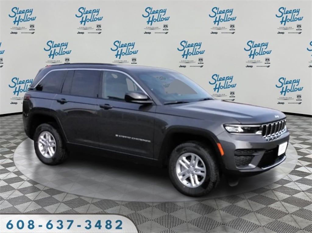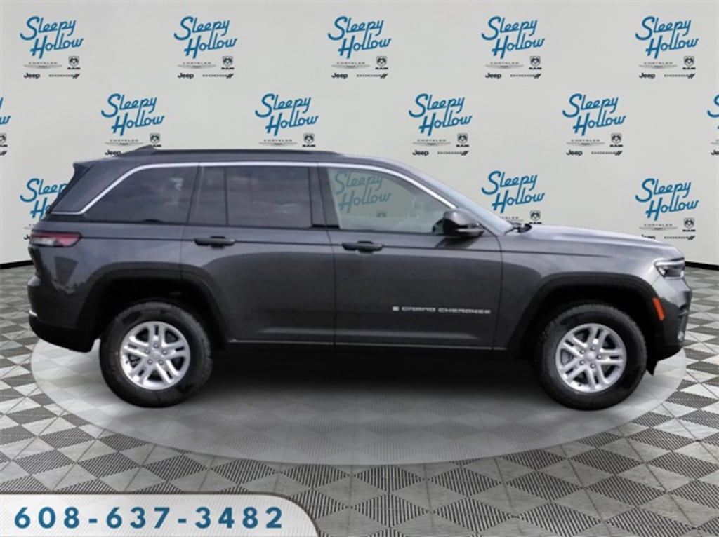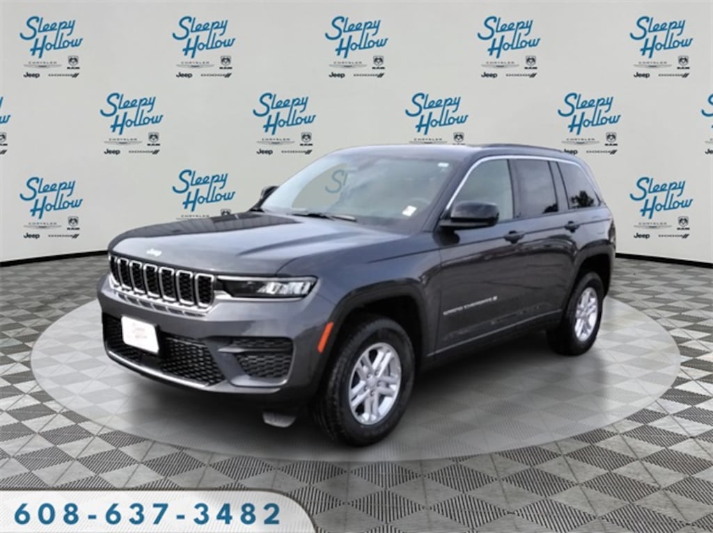 Baltic Gray Metallic Clearcoat 2025 Jeep Grand Cherokee Laredo 4WD 8-Speed Automatic 3.6L V6 24V VVT 4WD, 115V Auxiliary Power Outlet, 4-Wheel Disc Brakes, 6 Speakers, ABS brakes, Air Conditioning, Alloy wheels, AM/FM radio: SiriusXM, Anti-whiplash front head restraints, Automatic temperature control, Brake assist, Bumpers: body-color, Cloth Seats, Compass, Delay-off headlights, Driver door bin, Driver vanity mirror, Dual front impact airbags, Dual front side impact airbags, Electronic Stability Control, Emergency communication system, Four wheel independent suspension, Front anti-roll bar, Front Bucket Seats, Front Center Armrest w/Storage, Front dual zone A/C, Front License Plate Bracket, Front reading lights, Fully automatic headlights, Heated door mirrors, Heated Front Seats, Heated Steering Wheel, Illuminated entry, Knee airbag, Low tire pressure warning, Luxury Tech Group I, Model Year Tracking, Normal Duty Suspension, Occupant sensing airbag, Outside temperature display, Overhead airbag, Overhead console, Panic alarm, ParkView Rear Back-Up Camera, Passenger door bin, Passenger vanity mirror, Power door mirrors, Power driver seat, Power Liftgate, Power steering, Power windows, Quick Order Package 23A Laredo, Radio data system, Radio: Uconnect 5 w/8.4" Display, Rain Sensitive Windshield Wipers, Rear anti-roll bar, Rear reading lights, Rear window defroster, Rear window wiper, Remote keyless entry, Remote Start System, Secondary Active Grille Shutters, Security system, Selectable Tire Fill Alert, Speed control, Speed-Sensitive Wipers, Split folding rear seat, Spoiler, Steering wheel mounted audio controls, Tachometer, Telescoping steering wheel, Tilt steering wheel, Traction control, Trip computer, Variably intermittent wipers, Voltmeter, Wheels: 17" x 6.5" Fully Painted Aluminum, Wireless Charging Pad, 4WD.