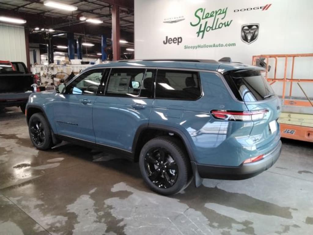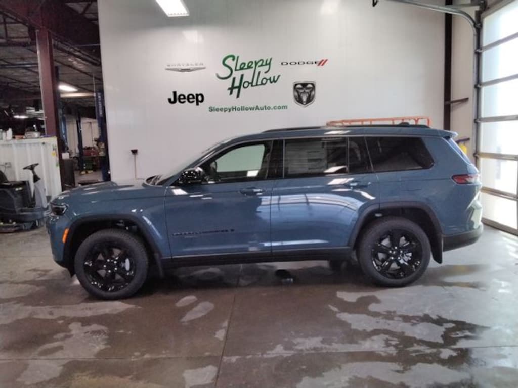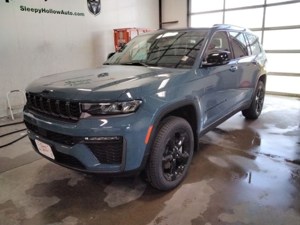 Steel Blue 2026 Jeep Grand Cherokee L Limited 4WD 8-Speed Automatic 2.0L Hurricane 4 Turbo with ESS 10 Speakers, 3.70 Rear Axle Ratio, 3rd row seats: split-bench, 4-Wheel Disc Brakes, 4G LTE Wi-Fi Hot Spot, 7 and 4 Pin Wiring Harness, ABS brakes, Active Noise Control System, Air Conditioning, Alloy wheels, AM/FM radio: SiriusXM with 360L, Anti-whiplash front head restraints, Apple CarPlay, AppLink/Apple CarPlay and Android Auto, Audio memory, Auto High-beam Headlights, Automatic temperature control, Brake assist, Bumpers: body-color, Capri Leatherette Seats, Class IV Receiver Hitch, Compass, Connectivity - US/Canada, Delay-off headlights, Delete Limited Badge, Disassociated Touchscreen Display, Driver door bin, Driver vanity mirror, Dual front impact airbags, Dual front side impact airbags, Dual-Pane Panoramic Sunroof, Electronic Stability Control, Emergency communication system, Exterior Accents Dark Neutral Metallic, For Details, Visit DriveUconnect.com, Four wheel independent suspension, Front anti-roll bar, Front Bucket Seats, Front Center Armrest w/Storage, Front dual zone A/C, Front fog lights, Front License Plate Bracket, Front reading lights, Fully automatic headlights, Garage door transmitter, Global Telematics Box Module (TBM), Gloss Black Exterior Mirrors, Google Android Auto, GPS Antenna Input, Heated door mirrors, Heated Exterior Mirrors, Heated front seats, Heated rear seats, Heated steering wheel, Illuminated entry, Integrated Center Stack Radio, Integrated Voice Command with Bluetooth, Interior Rear Facing Camera, Knee airbag, Limited Altitude Package, Low tire pressure warning, Manual Fold Seatbacks, Manual Folding Exterior Mirrors, Memory seat, MOPAR Finishing Package, MOPAR Front Splash Guards, MOPAR Paint Protection Film, MOPAR Rear Splash Guards with Jeep Logo, MyFlexCare Service Plan, Navigation System, Normal Duty Suspension, Occupant sensing airbag, Outside temperature display, Overhead airbag, Overhead console, Panic alarm, ParkView Rear Back-Up Camera, Passenger door bin, Passenger vanity mirror, Power door mirrors, Power driver seat, Power Fold Seatbacks, Power Liftgate, Power passenger seat, Power steering, Power windows, Quick Order Package 2BE Limited, Radio data system, Radio: Uconnect 5 Nav with 12.3" Display, Rear air conditioning, Rear anti-roll bar, Rear Load Leveling Suspension, Rear reading lights, Rear window defroster, Rear window wiper, Reclining 3rd row seat, Remote keyless entry, Security system, Speed control, Speed-Sensitive Wipers, Split folding rear seat, Spoiler, Steering wheel mounted audio controls, Tachometer, Telescoping steering wheel, Tilt steering wheel, Traction control, Trailer Hitch Zoom, Trailer Tow Package, Trip computer, Turn signal indicator mirrors, USB Host Flip, Variably intermittent wipers, Voltmeter, Wheels: 18" x 8.0" Polished/Painted Aluminum, Wheels: 20" x 8.5" Gloss Black Painted Aluminum.