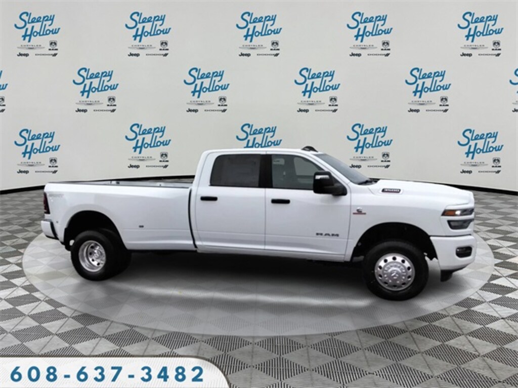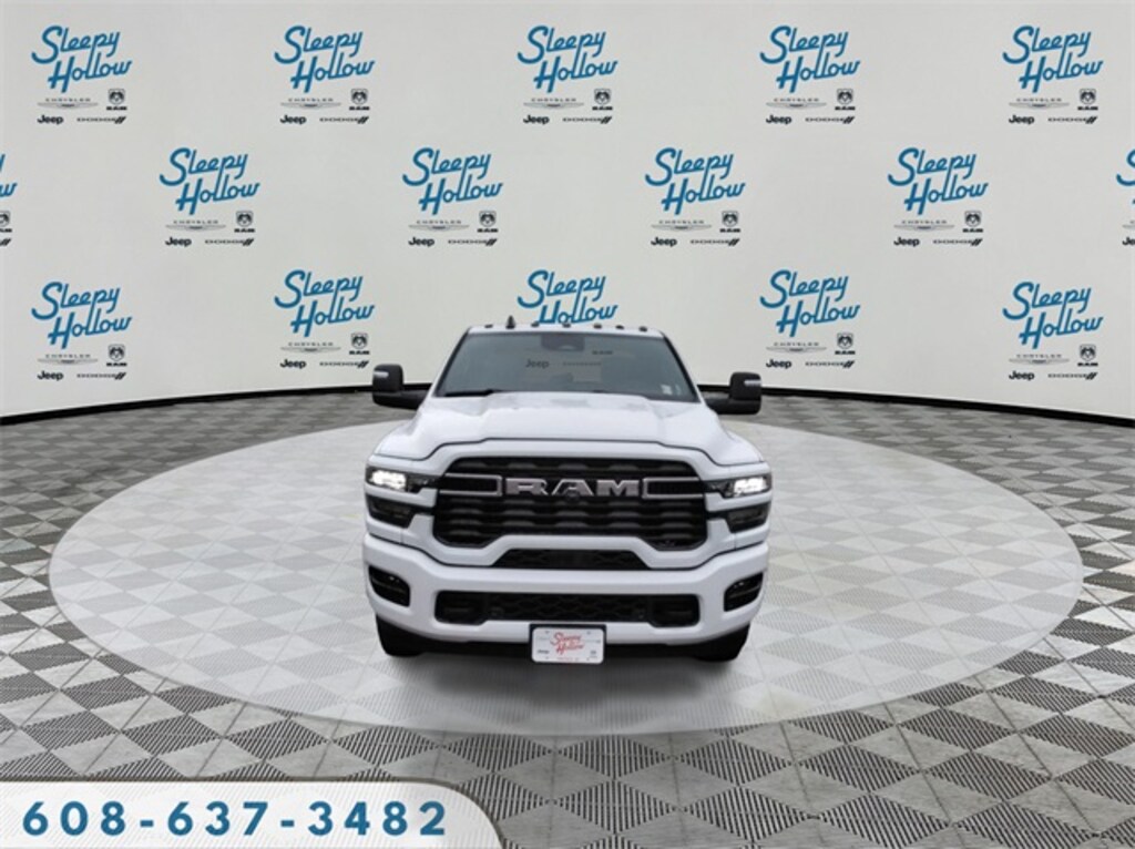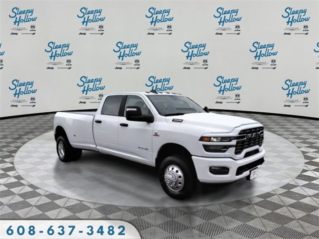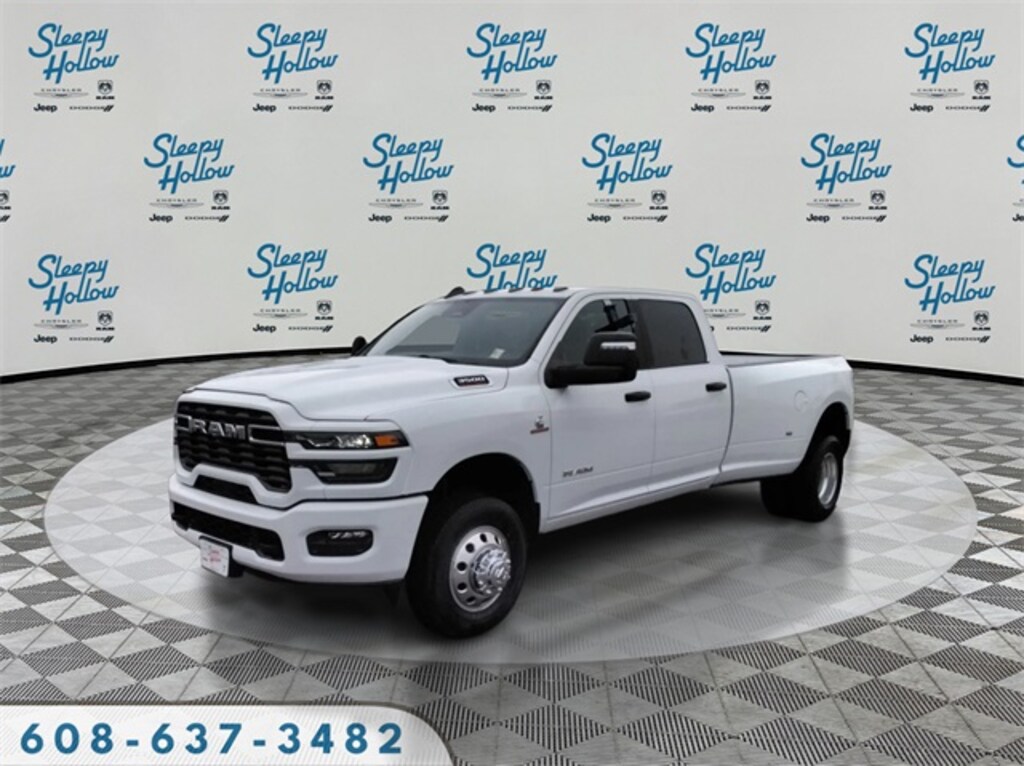 Bright White Clearcoat 2026 Ram 3500 Big Horn 4WD 8-Speed Automatic 6.7L I6 12" Touchscreen Display, 2 Way Rear Headrest Seat, 2nd Row in Floor Storage Bins, 4 Way Front Headrests, 4-Wheel Disc Brakes, 40/20/40 Split Bench Seat, 4G LTE Wi-Fi Hot Spot, 5th Wheel/Gooseneck Towing Prep Group, 6 Speakers, 6000# Front Axle with Hub Extension, 9 Alpine Speakers with Subwoofer, ABS brakes, Air Conditioning, Air Conditioning ATC with Dual Zone Control, Alexa Built-in, Alloy wheels, AM/FM radio: SiriusXM, Apple CarPlay, Apple CarPlay/Android Auto, Auto Power-Folding Mirrors, Auto-Dimming Rear-View Mirror, Big Horn Level 1 Plus Equipment Group, Black Exterior Mirrors, Black Interior Accents, Body Color Grille Surround, Box and Rear Fender Clearance Lamps, Brake assist, Bumpers: chrome, Center Hub, Clearance Lamps, Cloth 40/20/40 Bench Seat, Cloth 40/20/40 Premium Bench Seat, Compass, Connected Travel and Traffic Services, Connectivity - US/Canada, Delay-off headlights, Disassociated Touchscreen Display, Driver door bin, Dual front impact airbags, Dual front side impact airbags, Dual Glove Boxes, Dual Rear Wheels, Electronic Stability Control, Emergency Vehicle Alert System (EVAS), Exterior Mirrors Courtesy Lamps, Exterior Mirrors with Heating Element, Exterior Mirrors with Supplemental Signals, Foam Bottle Insert (door Trim Panel), Folding Flat Load Floor Storage, Footwell Courtesy Lamp, For Details Visit DriveUconnect.com, For More Info, Call 800-643-2112, Forward and Reverse Utility Lights, Front anti-roll bar, Front Armrest with Cupholders, Front Center Armrest w/Storage, Front Center Seat Cushion Storage, Front fog lights, Front License Plate Bracket, Front reading lights, Front Seat Back Map Pockets, Fully automatic headlights, Global Telematics Box Module, Glove Box Lamp, Google Android Auto, GPS Antenna Input, GPS Navigation, HD Radio, Heated door mirrors, Heated Front Seats, Heated Seats and Wheel Group, Heated Steering Wheel, Illuminated entry, Integrated Voice Command with Bluetooth, LED Bed Lighting, Locking Lower Glove Box, Low tire pressure warning, Luxury Steering Wheel, Manual Adjust 4-Way Driver Seat, Manual Adjust 4-Way Front Passenger Seat, Max Tow Package, Mirror Running Lights, MOPAR Deployable Bed Step, MOPAR Front and Rear Rubber Floor Mats, MOPAR Spray in Bedliner, Nexen Brand Tires, Occupant sensing airbag, Off-Road Information Pages, Outside temperature display, Overhead airbag, Overhead console, Painted Front Bumper, Painted Rear Bumper, Panic alarm, ParkView Rear Back-Up Camera, Passenger door bin, Passenger vanity mirror, Power 2-Way Driver Lumbar Adjust, Power Adjust 8-Way Driver Seat, Power Adjust Mirrors, Power door mirrors, Power Heated Fold Telescopic Mirrors, Power steering, Power Telescoping Mirrors, Power windows, Power-Adjustable Convex Aux Mirrors, Quick Order Package 24Z Big Horn, Radio data system, Radio: Uconnect 5 Navigation with 12.0" Display, Radio: Uconnect 5 with 8.4" Display, Rear 60/40 Folding Seat, Rear Dome with on/Off Switch Lamp, Rear Folding Seat, Rear seat center armrest, Rear step bumper, Rear Wheelhouse Liners, Rear window defroster, Remote keyless entry, Remote Start System, Remote USB Port - Charge Only, Selectable Tire Fill Alert, SiriusXM Radio Service, SiriusXM with 360L, Speed control, Sport Appearance Package, Sport Decal, Steering Wheel Mounted Audio Controls, Storage Tray, Tachometer, Tilt steering wheel, Traction control, Trailer Tow Pages, Trip computer, Turn signal indicator mirrors, Variably intermittent wipers, Voltmeter, Wheels: 17" x 6.0" Polished Aluminum, Wheels: 18" x 8.0" Polished Aluminum.