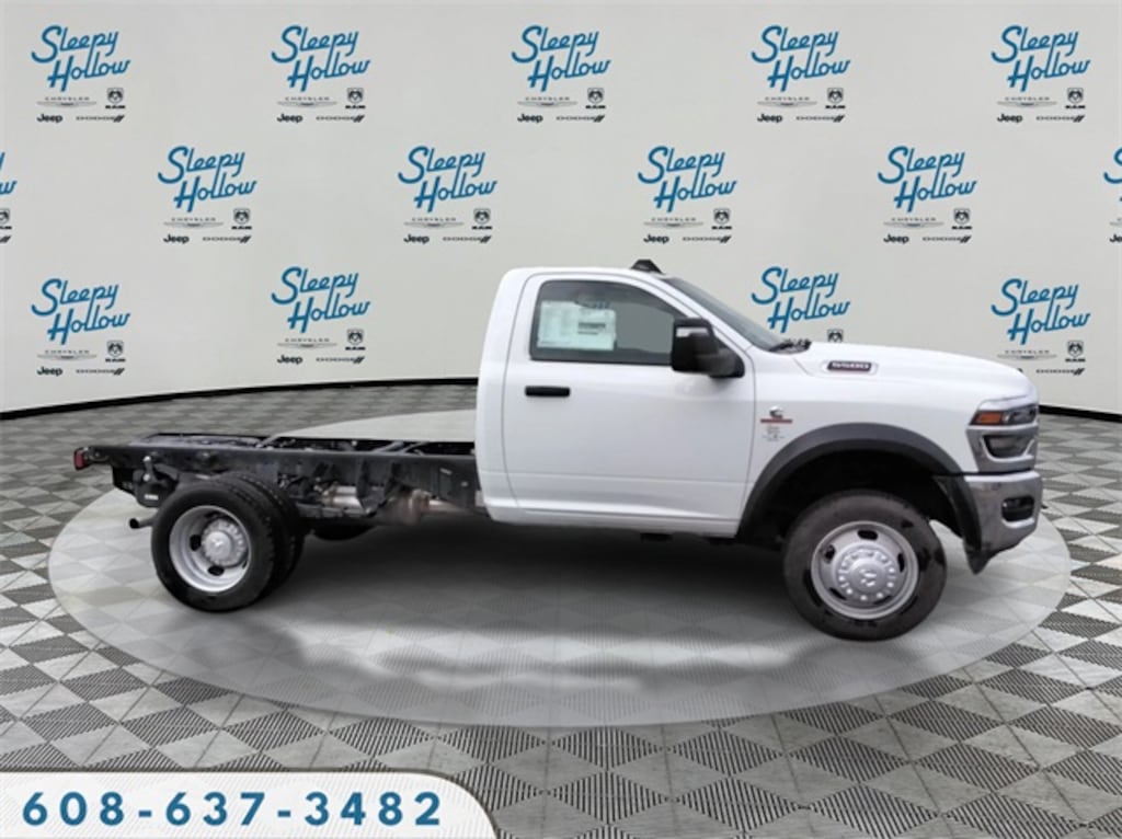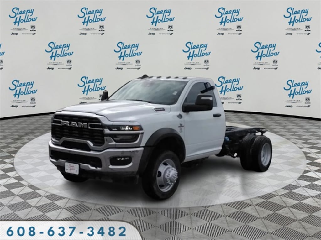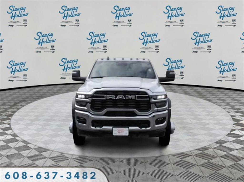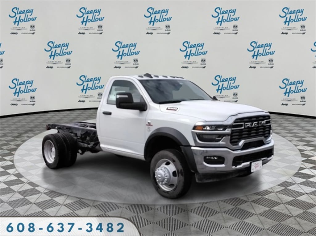Bright White Clearcoat 2026 Ram 5500HD Tradesman 4WD 8-Speed Automatic Cummins 6.7L I6 Turbodiesel 115V Auxiliary Power Outlet, 12.0" Touchscreen Display, 19.5" x 6.0" Steel Wheels, 4 Speakers, 4-Wheel Disc Brakes, 4.44 Axle Ratio, 40/20/40 Split Bench Seat, 400W Inverter, 4G LTE Wi-Fi Hot Spot, ABS brakes, Air Conditioning, Air Conditioning ATC w/Dual Zone Control, Alexa Built-In, AM/FM radio: SiriusXM, Apple CarPlay, Apple CarPlay/Android Auto, Black Exterior Mirrors, Black Power Heated Fold Telescope Mirrors, Bright Front Bumper, Cargo & CHMSL Lamp, Center Hub, Chrome Appearance Group, Chrome Grille Surround, Cold Weather Group, Compass, Connected Travel & Traffic Services, Connectivity - US/Canada, Delay-off headlights, Digital Rearview Mirror, Disassociated Touchscreen Display, Driver door bin, Dual front impact airbags, Dual rear wheels, Electronic Shift-On-The-Fly Transfer Case, Electronic Stability Control, Emergency communication system: RAM Connect, Engine Block Heater, Exterior Mirrors Courtesy Lamps, Exterior Mirrors w/Heating Element, Exterior Mirrors w/Supplemental Signals, For Details, Visit DriveUconnect.com, For More Info, Call 800-643-2112, Front 1-Touch Down Power Windows, Front anti-roll bar, Front Armrest w/Cupholders, Front Center Armrest w/Storage, Front fog lights, Front License Plate Bracket, Front reading lights, Fully automatic headlights, Global Telematics Box Module (TBM), Google Android Auto, GPS Antenna Input, GPS Navigation, HD Radio, Heavy Duty Front Suspension Group, Heavy Duty Snow Plow Prep Group, Integrated Voice Command w/Bluetooth, Manual Adjust 4-Way Driver Seat, Manual Adjust 4-Way Front Passenger Seat, Manual Folding Exterior Mirrors, Manual Telescoping Mirrors, Matte Black Mesh w/Chrome Grille, Max Tow Package, Mirror Running Lights, MOPAR Winter Front Grille Cover, Occupant sensing airbag, Off-Road Info Pages, Outside temperature display, Overhead console, ParkView Rear Back-Up Camera, Passenger door bin, Passenger vanity mirror, Power Adjust Mirrors, Power steering, Power Take-Off Right/Left, Power-Adjustable Convex Aux Mirrors, Quick Order Package 25A Tradesman, Radio data system, Radio: Uconnect 5 Nav w/12.0" Display, Radio: Uconnect 5 w/8.4" Display, Rear anti-roll bar, Remote Keyless Entry, Remote Start System, Remote USB Port - Charge Only, SiriusXM Radio Service, SiriusXM w/360L, Speed control, Speed Sensitive Power Locks, Tachometer, Temperature & Compass Gauge, Tilt steering wheel, Tinted Acoustic Windshield Glass, Traction control, Tradesman Level 2 Equipment Group, Trailer Brake Control, Trailer Light Check, Trailer Tow Pages, Upgraded Door Trim Panel, Upgraded Rear HD Stabilizer Bar, Variably intermittent wipers, Voltmeter, Wheels: 19.5" x 6.0" Black Painted Steel.