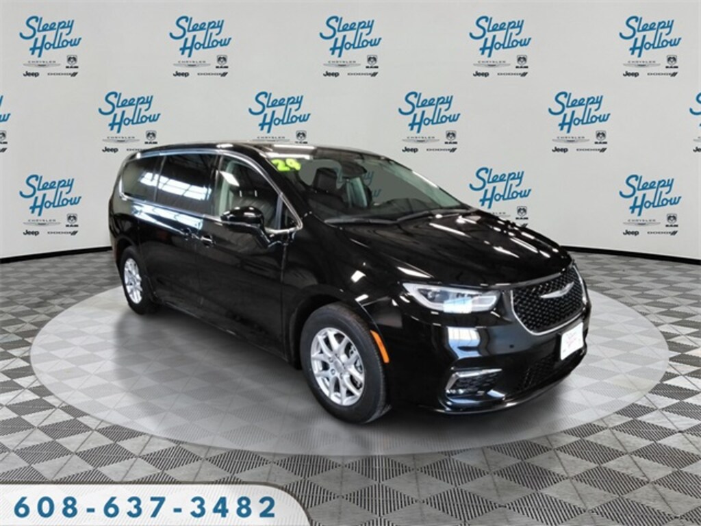 Diamond Black Crystal Pearlcoat 2024 Chrysler Pacifica Touring L FWD 9-Speed 948TE Automatic 3.6L V6 24V VVT 10.1" Touchscreen Display, 17" x 7.0" Aluminum Wheels, 3.25 Axle Ratio, 3rd row seats: split-bench, 4-Wheel Disc Brakes, 6 Speakers, ABS brakes, Air Conditioning, Alloy wheels, AM/FM radio: SiriusXM, Apple CarPlay, Apple CarPlay/Android Auto, Automatic temperature control, Black Seats, Brake assist, Bumpers: body-color, Caprice Leatherette Bucket Seats, Compass, Delay-off headlights, Disassociated Touchscreen Display, Driver door bin, Driver vanity mirror, Driver's Seat Mounted Armrest, Dual front impact airbags, Dual front side impact airbags, Electronic Stability Control, Four wheel independent suspension, Front anti-roll bar, Front Bucket Seats, Front dual zone A/C, Front fog lights, Front reading lights, Fully automatic headlights, Google Android Auto, GPS Antenna Input, Heated door mirrors, Heated front seats, Heated steering wheel, Illuminated entry, Integrated Active Noise Cancellation, Integrated Center Stack Radio, Knee airbag, Low tire pressure warning, Manufacturer's Statement of Origin, Memory seat, Occupant sensing airbag, Outside temperature display, Overhead airbag, Overhead console, Panic alarm, ParkView Rear Back-Up Camera, Passenger door bin, Passenger seat mounted armrest, Passenger vanity mirror, Power door mirrors, Power driver seat, Power Liftgate, Power steering, Power windows, Quick Order Package 27L, Radio data system, Radio: Uconnect 5 w/10.1" Display, Rain sensing wipers, Rear air conditioning, Rear reading lights, Rear window defroster, Rear window wiper, Reclining 3rd row seat, Remote keyless entry, Security system, Speed control, Split folding rear seat, Spoiler, Steering wheel mounted audio controls, Tachometer, Telescoping steering wheel, Tilt steering wheel, Touring Suspension, Traction control, Trip computer, Turn signal indicator mirrors, USB Host Flip, Variably intermittent wipers, Voltmeter.