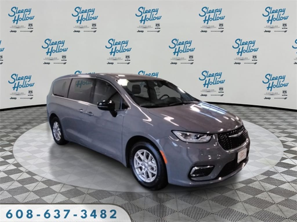 Ceramic Gray Clearcoat 2025 Chrysler Pacifica Select FWD 9-Speed 948TE Automatic 3.6L V6 24V VVT 10.1" Touchscreen Display, 17" x 7.0" Aluminum Wheels, 3.25 Axle Ratio, 3rd row seats: split-bench, 4-Wheel Disc Brakes, 4G LTE Wi-Fi Hot Spot, 6 Speakers, ABS brakes, Air Conditioning, Alloy wheels, AM/FM radio: SiriusXM, Apple CarPlay, Apple CarPlay/Android Auto, Auto-dimming Rear-View mirror, Automatic temperature control, Black Seats, Brake assist, Bumpers: body-color, Caprice Leatherette Bucket Seats, Compass, Delay-off headlights, Disassociated Touchscreen Display, Driver door bin, Driver vanity mirror, Driver's Seat Mounted Armrest, Dual front impact airbags, Dual front side impact airbags, Electronic Stability Control, Emergency communication system: Chrysler Connect, For Details, Visit DriveUconnect.com, Four wheel independent suspension, Front anti-roll bar, Front Bucket Seats, Front dual zone A/C, Front Fascia Air Deflectors, Front fog lights, Front reading lights, Fully automatic headlights, Garage door transmitter, Google Android Auto, GPS Antenna Input, Heated door mirrors, Heated front seats, Heated steering wheel, Illuminated entry, Integrated Active Noise Cancellation, Integrated Center Stack Radio, Knee airbag, Low tire pressure warning, Manufacturer's Statement of Origin, Memory seat, Occupant sensing airbag, Outside temperature display, Overhead airbag, Overhead console, Panic alarm, ParkView Rear Back-Up Camera, Passenger door bin, Passenger seat mounted armrest, Passenger vanity mirror, Power door mirrors, Power driver seat, Power Liftgate, Power steering, Power windows, Quick Order Package 27L, Radio data system, Radio: Uconnect 5 with 10.1" Display, Rain sensing wipers, Rear air conditioning, Rear reading lights, Rear window defroster, Rear window wiper, Reclining 3rd row seat, Remote keyless entry, Security system, SiriusXM Guardian - Included Trial (B), Speed control, Split folding rear seat, Spoiler, Steering wheel mounted audio controls, Tachometer, Telescoping steering wheel, Tilt steering wheel, Touring Suspension, Traction control, Trip computer, Turn signal indicator mirrors, USB Host Flip, Variably intermittent wipers, Voltmeter.