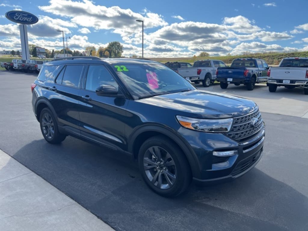 Stone Blue Metallic 2022 Ford Explorer XLT 4WD 10-Speed Automatic 2.3L EcoBoost I-4 ONE OWNER, 4WD, 1st Row Heated Seats, Acoustic-Laminated Front Side Windows, ActiveX Captain's Chairs, Equipment Group 202A, Evasive Steering Assist, Ford Co-Pilot360 Assist+, Heated front seats, Heated Steering Wheel, Intelligent Adaptive Cruise Control, LED Fog Lamps, Power Liftgate, Remote Start System, SecuriCode Keyless Entry Keypad, Speed Sign Recognition, Twin Panel Moonroof, Voice-Activated Touchscreen Navigation System, Wheels: 20" 10-Spoke Carbonized Gray-Painted, XLT Sport Appearance Package.