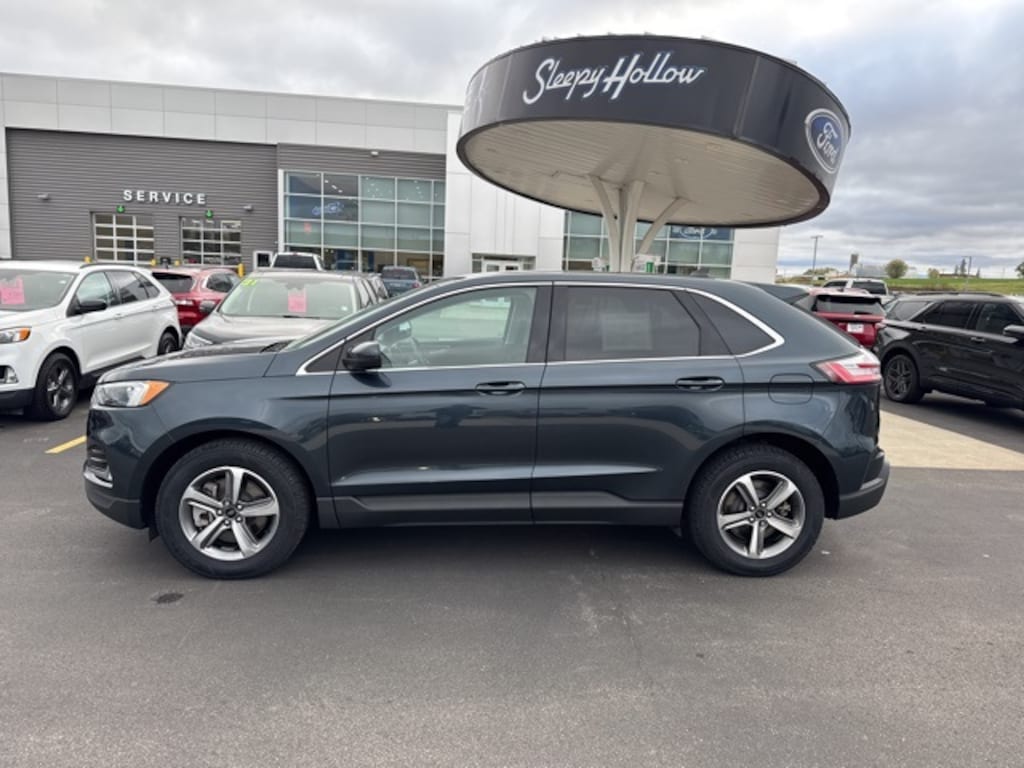 Stone Blue Metallic 2024 Ford Edge SEL AWD 8-Speed Automatic EcoBoost 2.0L I4 GTDi DOHC Turbocharged VCT ONE OWNER, AWD, Class II Trailer Tow Package, Equipment Group 201A, Heated front seats, Heated Steering Wheel, Panoramic Vista Roof, Power Liftgate, Wheels: 18" Bright-Machined Aluminum.