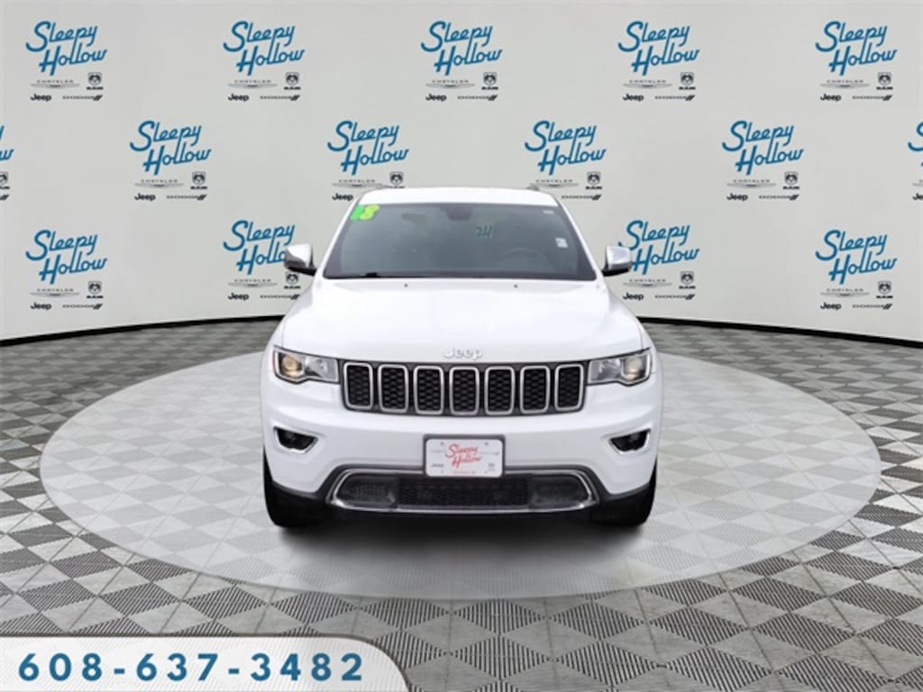 Bright White Clearcoat 2018 Jeep Grand Cherokee Limited 4WD 8-Speed Automatic 3.6L V6 24V VVT 4WD, 3.45 Rear Axle Ratio, 4-Wheel Disc Brakes, 6 Speakers, 7 & 4 Pin Wiring Harness, ABS brakes, Air Conditioning, Alloy wheels, AM/FM radio: SiriusXM, Anti-whiplash front head restraints, Apple CarPlay, Apple CarPlay/Android Auto, Audio memory, Auto-dimming door mirrors, Auto-Dimming Exterior Passenger Mirror, Auto-dimming Rear-View mirror, Automatic temperature control, Blind Spot & Cross Path Detection, Brake assist, Bumpers: body-color, Chrome Exterior Mirrors, Class IV Receiver Hitch, Compass, Delay-off headlights, Driver door bin, Driver vanity mirror, Dual front impact airbags, Dual front side impact airbags, Electronic Stability Control, Engine Block Heater, Engine Oil Cooler, Four wheel independent suspension, Front anti-roll bar, Front Bucket Seats, Front Center Armrest w/Storage, Front dual zone A/C, Front fog lights, Front License Plate Bracket, Front reading lights, Fully automatic headlights, Garage door transmitter, Google Android Auto, GPS Antenna Input, Heated door mirrors, Heated front seats, Heated rear seats, Heated steering wheel, Heavy-Duty Engine Cooling, Illuminated entry, Integrated Voice Command w/Bluetooth, Knee airbag, Leather Shift Knob, Leather Trimmed Bucket Seats, Low tire pressure warning, Memory seat, Normal Duty Suspension, Occupant sensing airbag, Outside temperature display, Overhead airbag, Overhead console, Panic alarm, ParkView Rear Back-Up Camera, Passenger door bin, Passenger vanity mirror, Power door mirrors, Power driver seat, Power Liftgate, Power passenger seat, Power steering, Power windows, Quick Order Package 2BH, Radio data system, Radio: Uconnect 4 w/7" Display, Rear anti-roll bar, Rear Load Leveling Suspension, Rear reading lights, Rear seat center armrest, Rear window defroster, Rear window wiper, Remote keyless entry, Roof rack: rails only, Security system, Speed control, Speed-Sensitive Wipers, Split folding rear seat, Spoiler, Steering wheel mounted audio controls, Tachometer, Telescoping steering wheel, Tilt steering wheel, Traction control, Trailer Tow Group IV, Trip computer, Turn signal indicator mirrors, USB Host Flip, Variably intermittent wipers, Wheels: 18" x 8.0" Tech Gray Aluminum, 4WD.