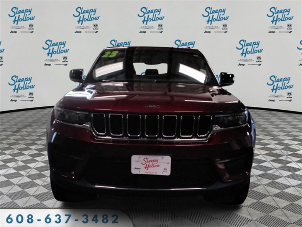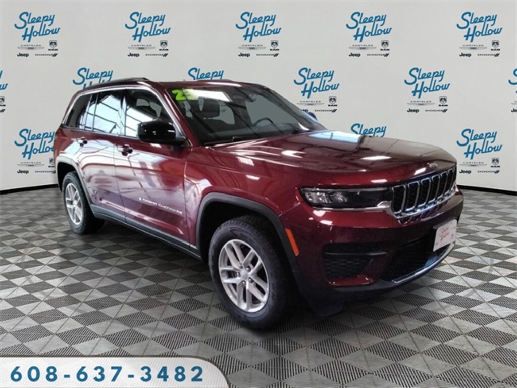 Velvet Red Pearlcoat 2023 Jeep Grand Cherokee Laredo 4WD 8-Speed Automatic 3.6L V6 24V VVT 4WD, 115V Auxiliary Power Outlet, 180 Amp Alternator, 3.45 Rear Axle Ratio, 4-Wheel Disc Brakes, 6 Speakers, ABS brakes, Air Conditioning, Alloy wheels, Anti-whiplash front head restraints, Automatic Headlamp Levelling System, Automatic temperature control, Brake assist, Bumpers: body-color, Cloth Seats, Compass, Delay-off headlights, Driver door bin, Driver vanity mirror, Dual front impact airbags, Dual front side impact airbags, Electronic Stability Control, Emergency communication system, Four wheel independent suspension, Front anti-roll bar, Front Bucket Seats, Front Center Armrest w/Storage, Front dual zone A/C, Front reading lights, Fully automatic headlights, Heated door mirrors, Heated Front Seats, Heated Steering Wheel, Heavy-Duty Engine Cooling, Illuminated entry, Knee airbag, Low tire pressure warning, Luxury Tech Group I, Molded In Color Black/Gloss Black Roof Rails, Normal Duty Suspension, Occupant sensing airbag, Outside temperature display, Overhead airbag, Overhead console, Panic alarm, ParkView Rear Back-Up Camera, Passenger door bin, Passenger vanity mirror, Power door mirrors, Power driver seat, Power Liftgate, Power steering, Power Sunroof (DISC), Power windows, Quick Order Package 23A Laredo, Radio data system, Radio: Uconnect 5 w/8.4" Display, Rain Sensitive Windshield Wipers, Rear anti-roll bar, Rear Load Levelling Suspension, Rear reading lights, Rear window defroster, Rear window wiper, Remote keyless entry, Remote Start System, Secondary Active Grille Shutters, Security system, Selectable Tire Fill Alert, Speed control, Speed-Sensitive Wipers, Split folding rear seat, Spoiler, Steering wheel mounted audio controls, Tachometer, Telescoping steering wheel, Tilt steering wheel, Traction control, Trailer Hitch Zoom, Trailer Tow Prep Group (B) (DISC), Trip computer, Variably intermittent wipers, Voltmeter, Wheels: 17" x 6.5" Fully Painted Aluminum, Wheels: 18" x 8" Fully Painted Aluminum (DISC), Wireless Charging Pad, 4WD.