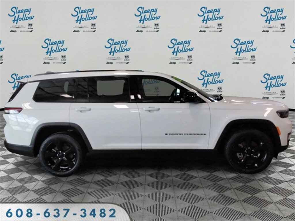 Bright White Clearcoat 2023 Jeep Grand Cherokee L Limited 4WD 8-Speed Automatic 3.6L V6 24V VVT 2nd Row Manual Window Shades, 3.45 Rear Axle Ratio, 3rd row seats: split-bench, 4-Wheel Disc Brakes, 6 Speakers, ABS brakes, Active Noise Control System, Air Conditioning, Alloy wheels, AM/FM radio: SiriusXM with 360L, Anti-whiplash front head restraints, Audio memory, Auto High-beam Headlights, Auto-Dimming Exterior Driver Mirror, Automatic temperature control, Black Appearance Package, Brake assist, Bumpers: body-color, Capri Leatherette Seats, Capri Leatherette w/Axis II Seats, Compass, Delay-off headlights, Driver door bin, Driver vanity mirror, Dual front impact airbags, Dual front side impact airbags, Dual-Pane Panoramic Sunroof, Electronic Stability Control, Emergency communication system, Four wheel independent suspension, Front anti-roll bar, Front Bucket Seats, Front Center Armrest w/Storage, Front dual zone A/C, Front fog lights, Front License Plate Bracket, Front reading lights, Fully automatic headlights, Garage door transmitter, Gloss Black Exterior Accents, Heated door mirrors, Heated front seats, Heated rear seats, Heated steering wheel, Illuminated entry, Integrated Off-Road Camera, Interior Rear Facing Camera, Intersection Collision Assist System, Knee airbag, Low tire pressure warning, Luxury Tech Group II, Manual Fold Seatbacks, Memory seat, Memory Steering Column, Molded In Color Black/Gloss Black Roof Rails, Navigation System, Normal Duty Suspension, Occupant sensing airbag, Outside temperature display, Overhead airbag, Overhead console, Panic alarm, ParkSense Front/Rear Park Assist w/Stop, ParkView Rear Back-Up Camera, Passenger door bin, Passenger vanity mirror, Passive Entry - Front/Rear Doors, Liftgate, Power door mirrors, Power driver seat, Power Liftgate, Power passenger seat, Power steering, Power Tilt/Telescope Steering Column, Power windows, Quick Order Package 22E, Radio data system, Radio: Uconnect 5 Nav w/10.1" Display, Rain Sensitive Windshield Wipers, Rear air conditioning, Rear anti-roll bar, Rear Back Up Camera Washer, Rear reading lights, Rear window defroster, Rear window wiper, Rearview Autodim Digital Display Mirror, Reclining 3rd row seat, Remote keyless entry, Security system, Speed control, Speed-Sensitive Wipers, Split folding rear seat, Spoiler, Steering wheel mounted audio controls, Surround View Camera System, Tachometer, Telescoping steering wheel, Tilt steering wheel, Traction control, Trip computer, Turn signal indicator mirrors, Variably intermittent wipers, Ventilated Front Seats, Voltmeter, Wheels: 18" x 8.0" Fully Painted Aluminum, Wheels: 20" x 8.5" Gloss Black Painted Aluminum, Wireless Charging Pad.