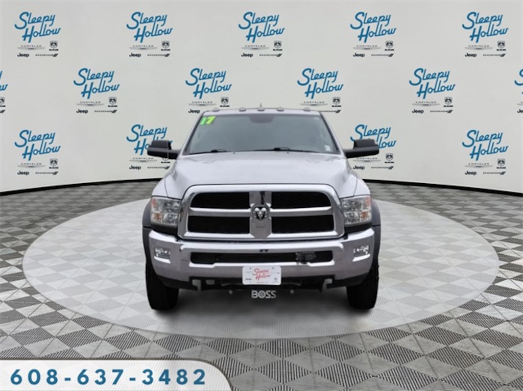 Bright Silver Metallic Clearcoat 2017 Ram 5500HD Tradesman 4WD Aisin 6-Speed Automatic Cummins 6.7L I6 Turbodiesel 19.5" x 6.0" Steel Wheels, 2 Speakers, 220 Amp Alternator, 4-Wheel Disc Brakes, 4.44 Axle Ratio, 40/20/40 Split Bench Seat, ABS brakes, Air Conditioning, AM/FM radio, Base Door Trim Panel, Black Tubular Side Steps, Bright Front Bumper, Bright Grille, Chrome Appearance Group, Cold Weather Group, Delay-off headlights, Driver door bin, Dual front impact airbags, Dual front side impact airbags, Dual rear wheels, Electric Shift-On-The-Fly Transfer Case, Electronic Stability Control, Electronically Controlled Throttle, Engine Block Heater, Exterior Mirrors Courtesy Lamps, Exterior Mirrors w/Heating Element, Exterior Mirrors w/Supplemental Signals, Fog Lamps, Front 1-Touch Down Power Windows, Front anti-roll bar, Front Center Armrest w/Storage, Fully automatic headlights, HD Vinyl 40/20/40 Split Bench Seat, Heavy Duty Front Suspension Group, Heavy Duty Snow Plow Prep Group, Manual Adjust Seats, Media Hub (USB, AUX), Mini Floor Console, Occupant sensing airbag, Passenger door bin, Passenger vanity mirror, Power & Remote Entry Group, Power Black Trailer Tow Mirrors, Power Locks, Power steering, Premium Vinyl Door Trim w/Map Pocket, Quick Order Package 29A ST, Radio data system, Radio: 3.0, Rear anti-roll bar, Remote Keyless Entry, Speed control, Tachometer, Tilt steering wheel, Traction control, Trailer Brake Control, Trip computer, Upfitter Electronic Module (VSIM), Variably intermittent wipers, Voltmeter, Winter Front Grille Cover.